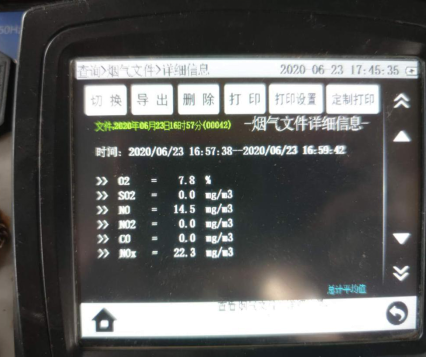 此次湖北丰利化工有限责任公司制酸尾气脱硫项目,设计气量7.5万Nm3/h,二氧化硫排放浓度设计值为1500mg/m3,运行过程中实测二氧化硫浓度为800mg/m3。本项目采用新型催化法烟气脱硫技术处理后,烟气中的二氧化硫和硫酸雾排放数据均低于设计要求值,其中出口二氧化硫浓度,第三方检测机构检测数据显示0mg/m3,远低于合同规定的超低排放的要求,且脱硫产物稀硫酸全部回收进入硫酸生产工段,无二次污染,完全实现零排放。下图为现场检测仪器实测数据。